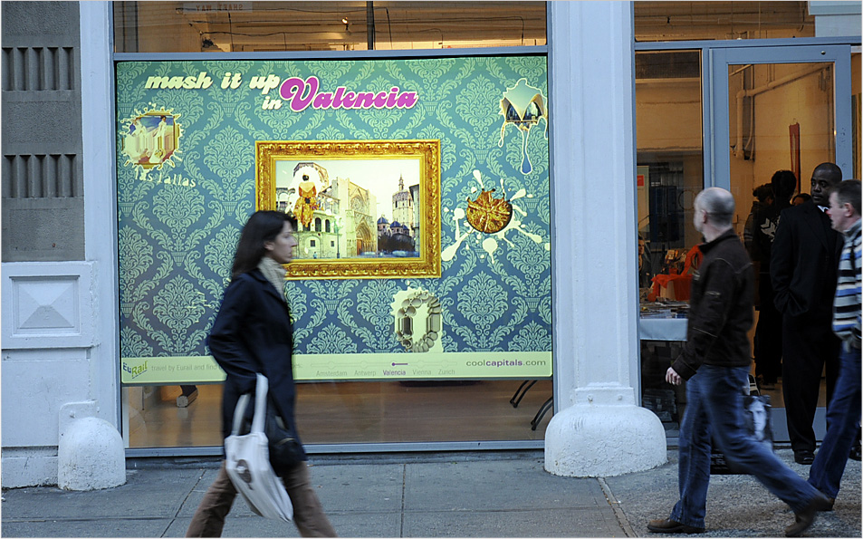 “Mash It Up!” was a five-day brand event hosted at the trendy OpenHouse Gallery in SoHo. The idea was to reflect the spirit of the five cities in a fun and engaging way that would get potential travelers to consider visiting them. A key factor in determining the promotion’s success was its ability to grab attention and surprise pedestrians with a unique blend of media, technology, and design.