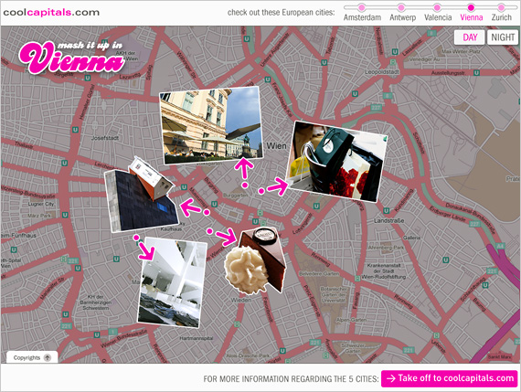 Event participants who retrieved their photos were also encouraged to share them with friends. As a result this sitelet turned into a viral engine for spreading the word about CoolCapitals.