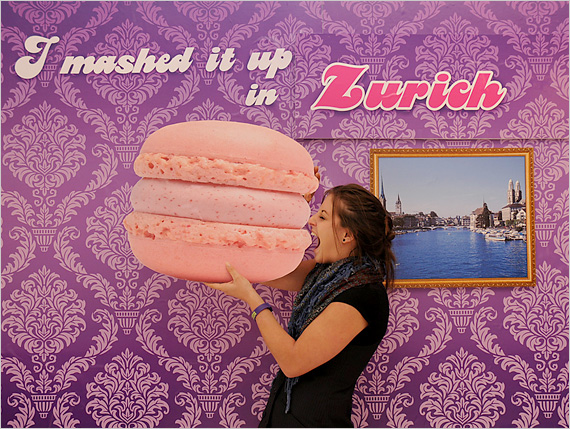 Inside the gallery was a photo set where visitors could be shot against a personalized montage backdrop, including their favorite city. These photographs were later uploaded to an event sitelet where participants could retrieve them.